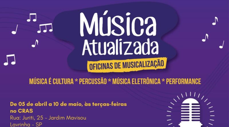 A Prefeitura de Lavrinhas irá oferecer uma Oficina de Musicalização chamado Música Atualizada.
