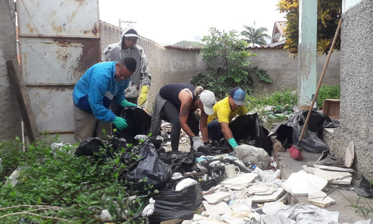 A equipe de combate a dengue sai às ruas, com ajuda da equipe da Secretaria Municipal de Obras e Serviços Públicos, com o objetivo de recolher possíveis focos e eliminar criadouros, além de orientar os moradores referente ao assunto.