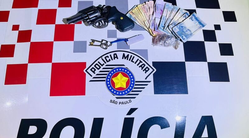 Após diligências nas proximidades do local dos crimes, os policiais militares encontraram e prenderam o suspeito. Com ele, foram apreendidos um revólver calibre 38 municiado, porções de substância semelhante à maconha e dinheiro.