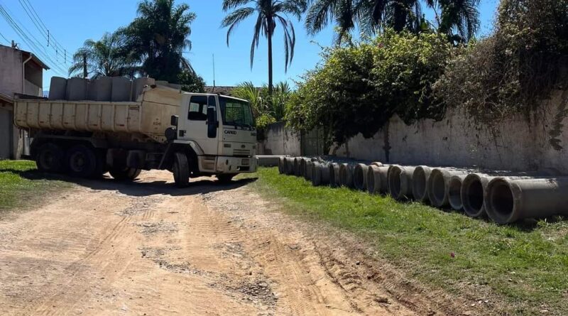 Manilhas chegam à Rua José Puccini para melhorar escoamento de águas pluviais no bairro Itagaçaba