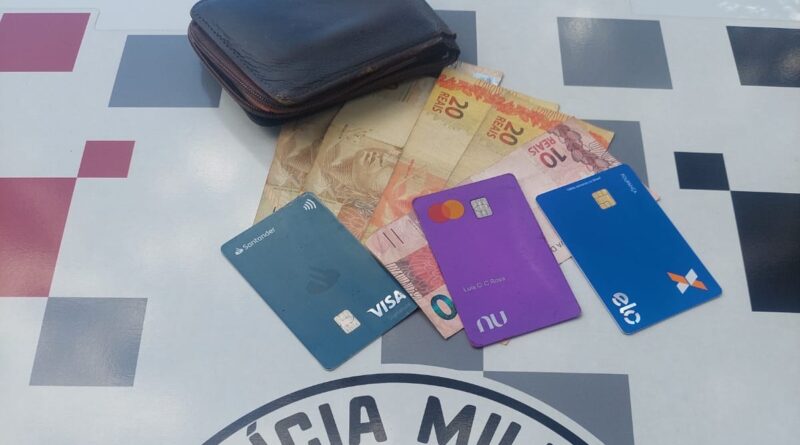Após receberem informações sobre as características do suspeito, os policiais saíram em patrulhamento e conseguiram abordá-lo próximo à feira na região central da cidade. Durante a abordagem, os policiais encontraram a carteira da vítima, contendo documentos, cartões de banco e a quantia de R$150,00 em posse do infrator.
