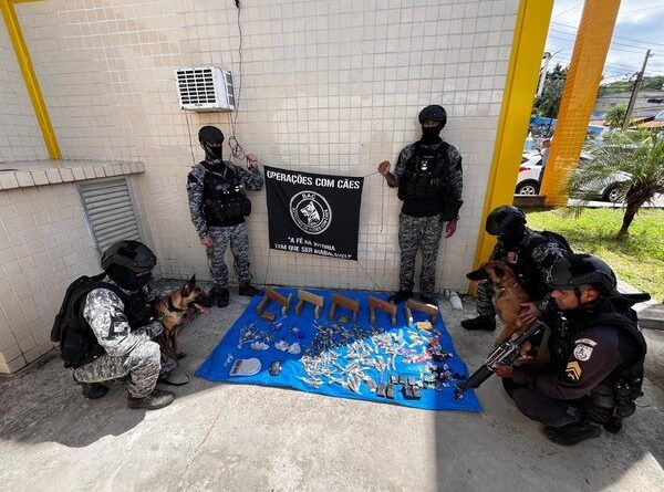 Durante a operação, um suspeito foi encontrado com entorpecentes escondidos no forro do telhado de um prédio na comunidade do Paraíso. Já na Vila Delgado, os cães farejadores localizaram drogas, levando à prisão de outro homem, que já possuía um mandado de prisão em aberto.