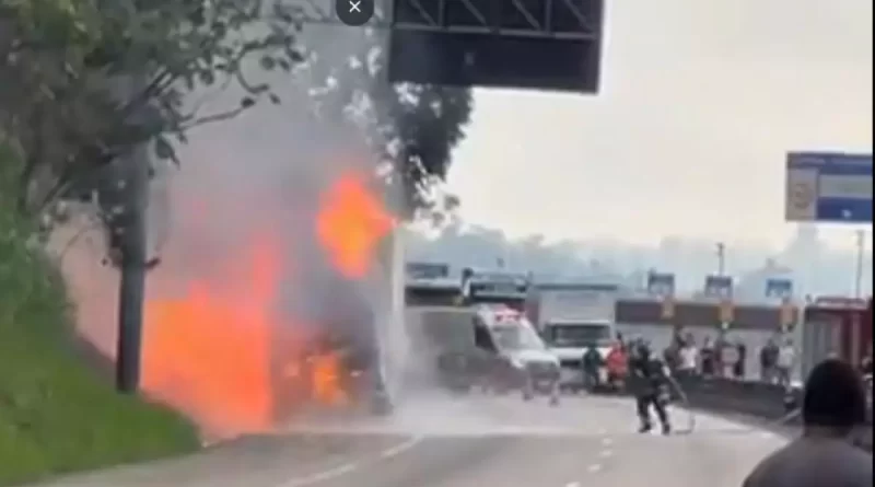 Caminhão Incendeia e Interdita Rodovia Presidente Dutra em Jacareí