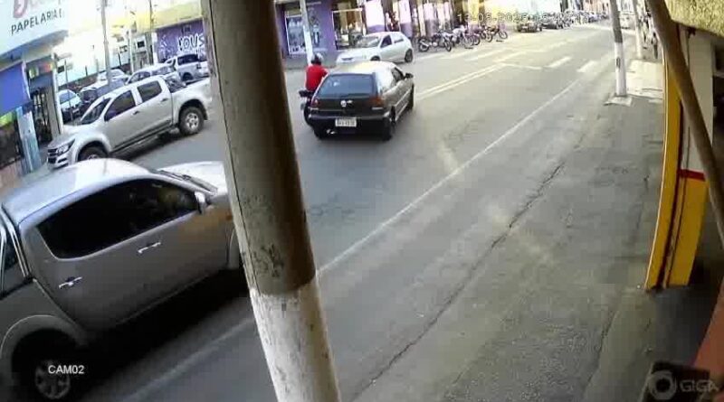 Vídeo flagra moto batendo em carro parado para conversão na Rua Engenheiro Antônio Penido, em Cruzeiro