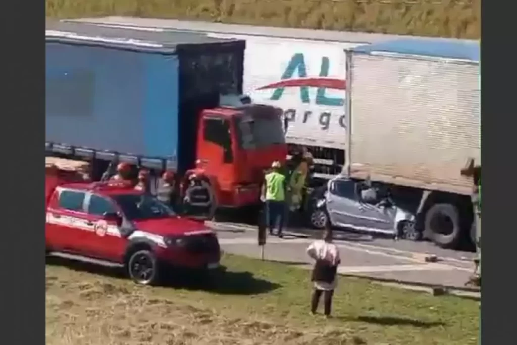 De acordo com informações da Polícia Rodoviária Federal (PRF), a colisão aconteceu na altura do quilômetro 134 da pista sentido São Paulo. Por motivos que ainda estão sendo apurados, o automóvel seguia pela via quando acabou sendo atingido por dois veículos de carga. O carro ficou esmagado entre os caminhões, gerando uma cena que chamou a atenção de quem passava pelo local.