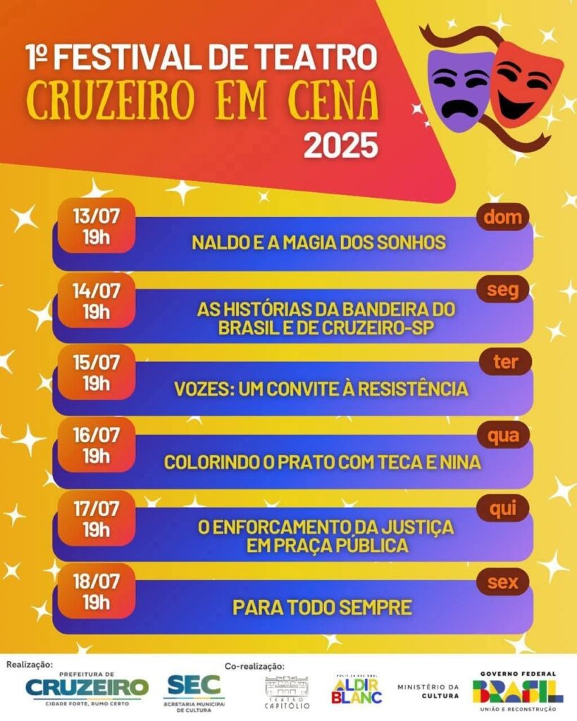 “Essa é só a primeira edição. A cultura em Cruzeiro vive um novo tempo, e o teatro tem um papel fundamental nesse processo de transformação social”, concluiu.