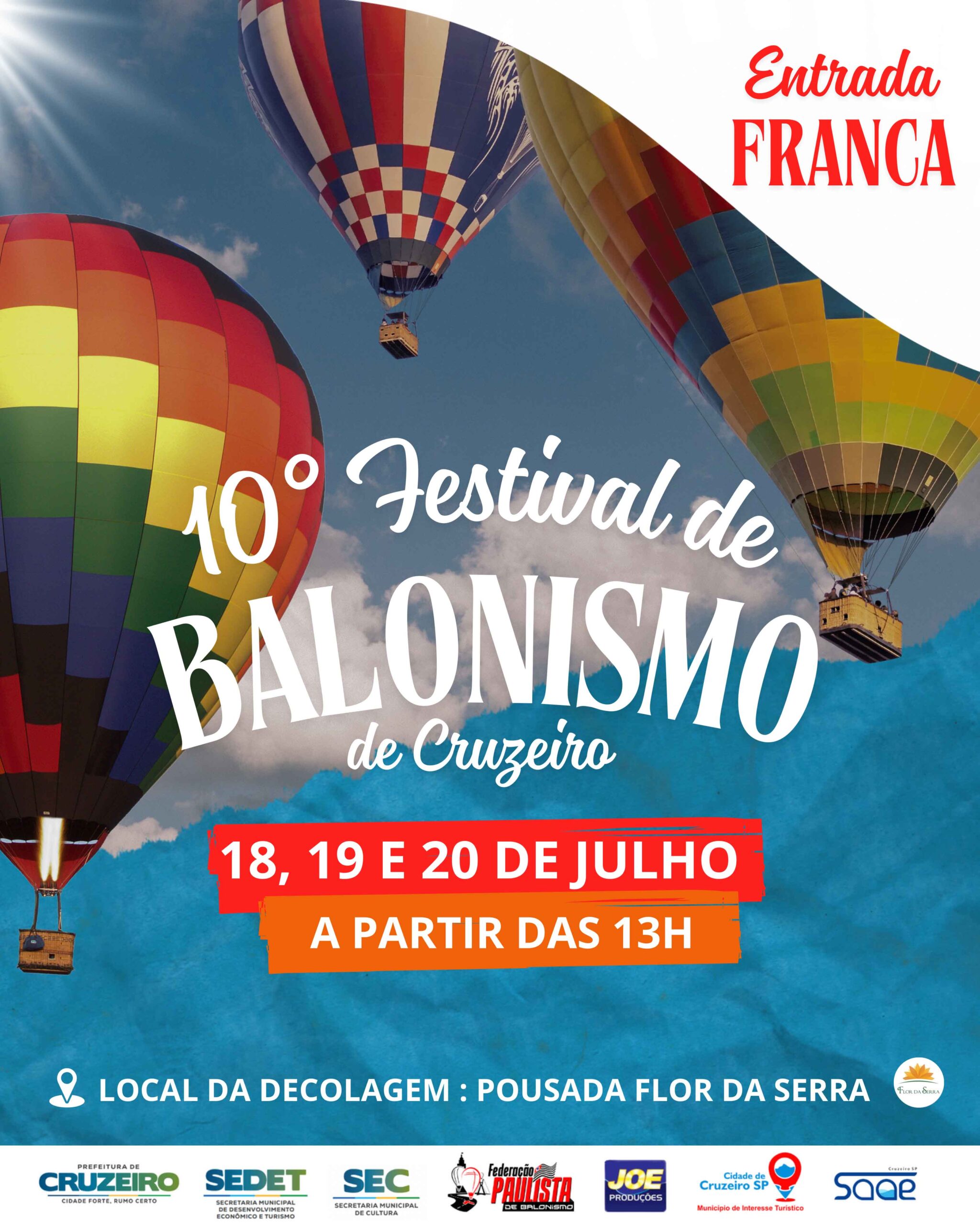 Prepare-se para três dias de pura magia no céu e muita alegria no chão! Nos dias 18, 19 e 20 de julho, a cidade de Cruzeiro-SP será palco da 10ª edição do Festival de Balonismo, um dos eventos mais aguardados da região. E o melhor: entrada totalmente gratuita!