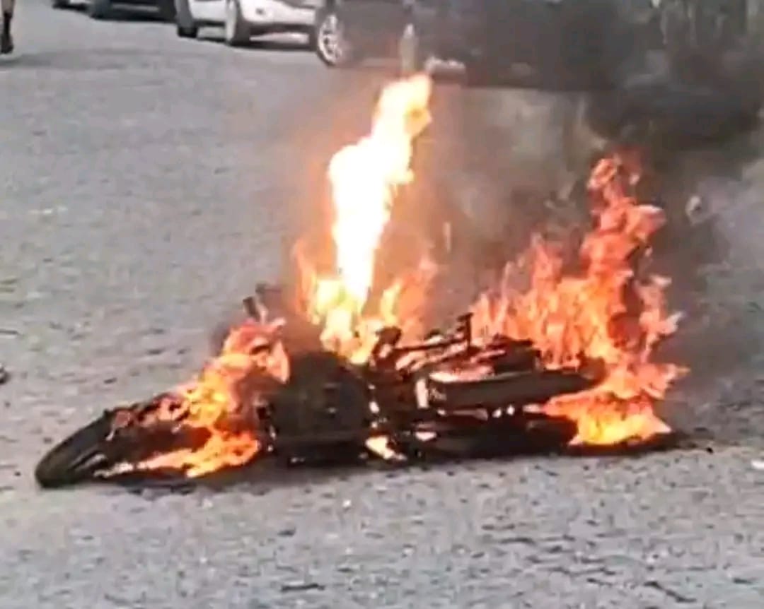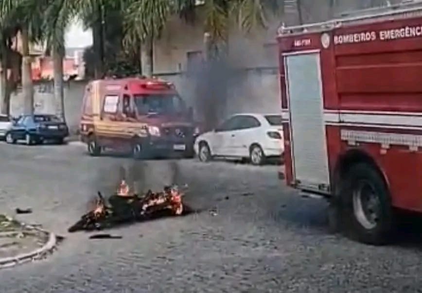 MOTOCICLETA PEGA FOGO APÓS COLISÃO FRONTAL NA VILA BRASIL EM CRUZEIRO