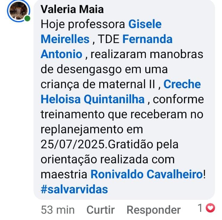 Na segunda-feira, 11 de agosto, durante as atividades escolares, uma criança começou a se engasgar. Em questão de segundos, a alegria deu lugar ao desespero: olhares assustados, respiração presa, o silêncio que só é quebrado pelo som da aflição. Mas o professor, atento e sereno, sabia exatamente o que fazer. Com precisão e confiança, aplicou a manobra de Heimlich — técnica que havia aprendido recentemente em um curso de salvamento e primeiros socorros realizado na própria creche no dia 25 de julho.