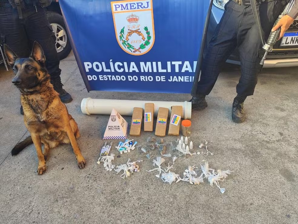 Um cão farejador da Polícia Militar foi decisivo para localizar um grande carregamento de drogas durante a Operação Impacto, na tarde de quinta-feira (14), em Barra Mansa (RJ). A ação aconteceu na Rua Francisco Bento da Silva, no bairro Vila Delgado, e resultou na apreensão de mais de 4 kg de maconha, além de diversas outras drogas embaladas e prontas para venda.