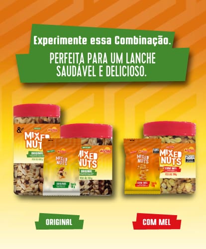 No portfólio, a Agtal oferece opções que conquistam todos os paladares: Amendoim, em diversas versões que agradam tanto no dia a dia quanto em momentos especiais; Mixed Nuts, a mistura perfeita de castanhas selecionadas; Castanhas Especiais, que carregam a essência da qualidade e sofisticação; e a clássica Paçoca, que desperta lembranças afetivas e continua sendo paixão nacional. Cada produto é elaborado para transformar qualquer ocasião em um momento crocante e prazeroso.