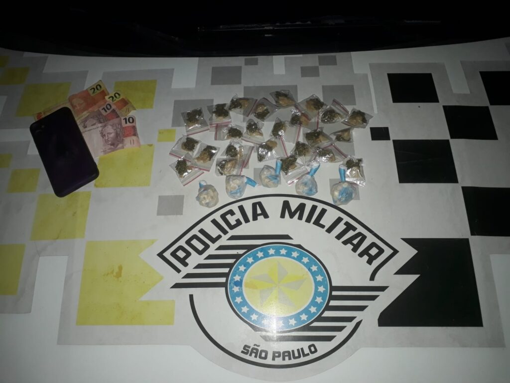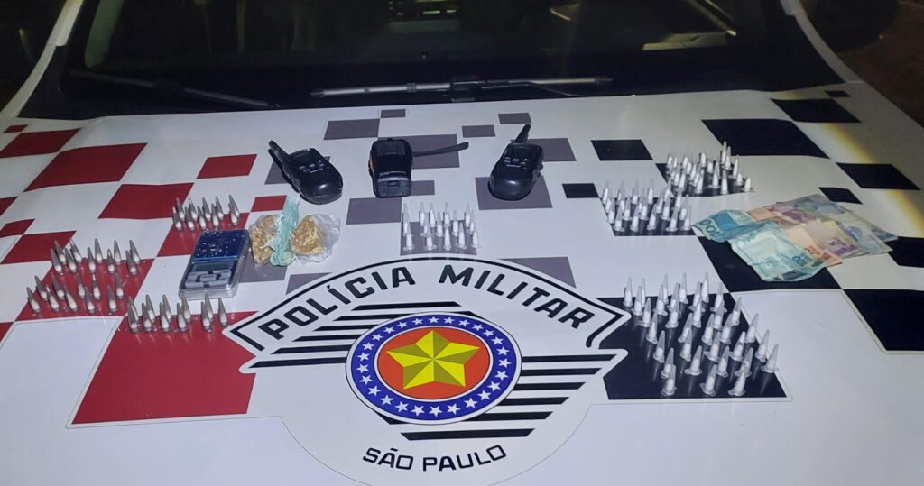 Na madrugada de 20 de agosto, policiais militares do 23º BPM/I prenderam dois traficantes no bairro Parque das Rodovias. Durante a abordagem, foram apreendidas 70 porções de crack, 24 porções de maconha, R$ 60 em espécie e um celular.