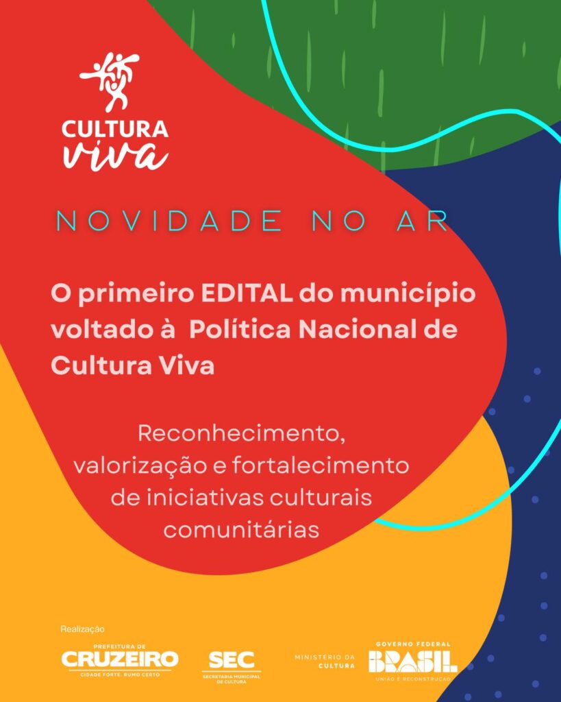 A Prefeitura de Cruzeiro, por meio da Secretaria Municipal de Cultura e Turismo, lançou oficialmente o Edital Cultura Viva – Ciclo 1 (Edital 003/2025/SEC), que representa um marco para o setor cultural da cidade. O edital abre espaço para artistas, coletivos e fazedores de cultura inscreverem seus projetos, contemplando diversas linguagens artísticas, e reforça o compromisso da administração municipal com a valorização e o fortalecimento da produção cultural local.