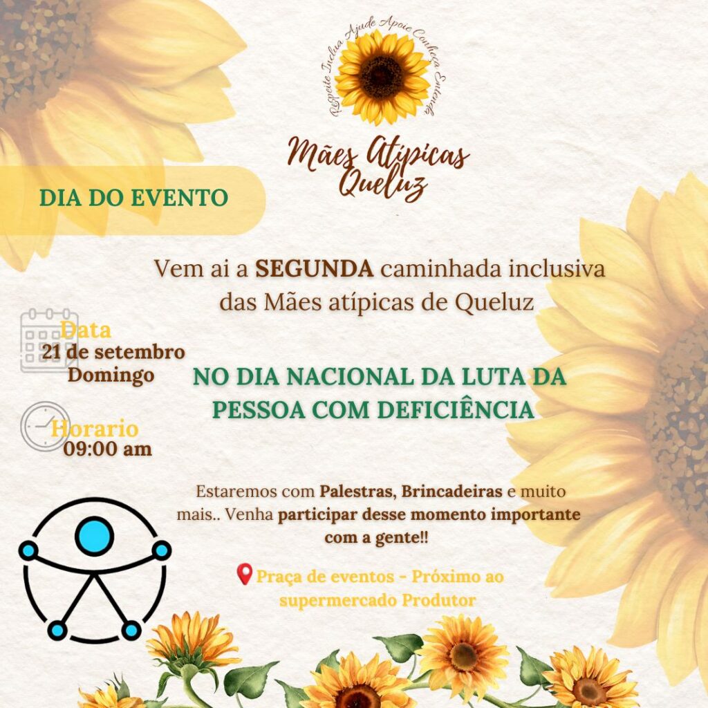 A cidade de Queluz se prepara para viver um dia especial de conscientização, união e valorização da diversidade. No próximo dia 21 de setembro, domingo, às 9h da manhã, será realizada a Segunda Caminhada Inclusiva das Mães Atípicas de Queluz, um evento que faz parte das mobilizações pelo Dia Nacional da Luta da Pessoa com Deficiência.
