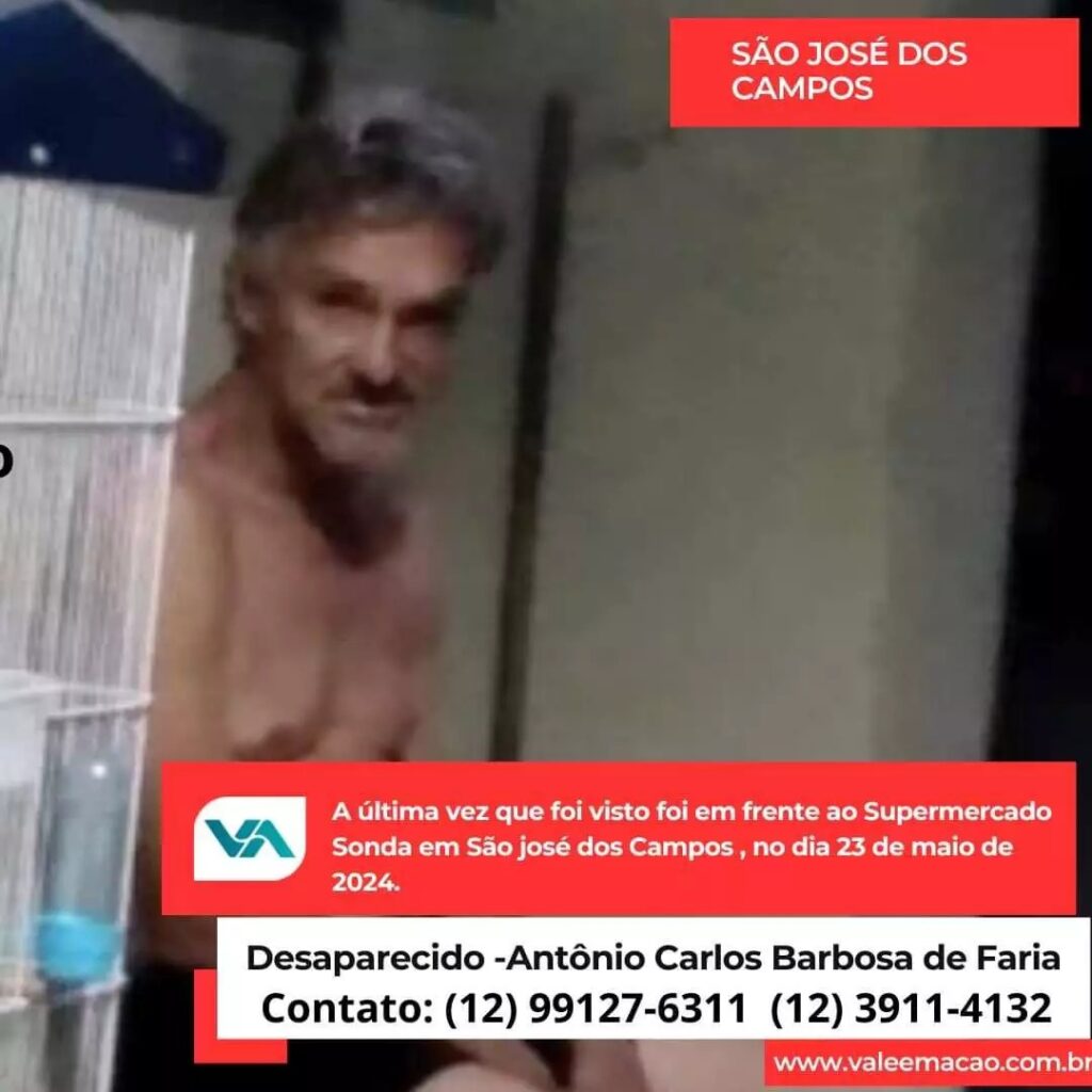 A pergunta que não cala continua ecoando no coração de uma família de São José dos Campos: onde está Antônio Carlos Barbosa de Faria? O idoso, morador do Jardim Paulista, região central da cidade, está desaparecido desde o dia 23 de maio de 2024. Hoje já se completam 465 dias de ausência, incerteza e dor.