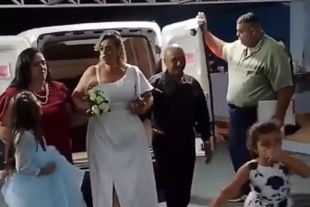 No momento da entrada da noiva, os convidados ouviram o som característico do veículo dando ré, seguido pela voz do irmão anunciando: “Entrega da Shopee!”. Ele ainda fez graça ao entregar uma prancheta para a mãe “assinar o recebimento”.