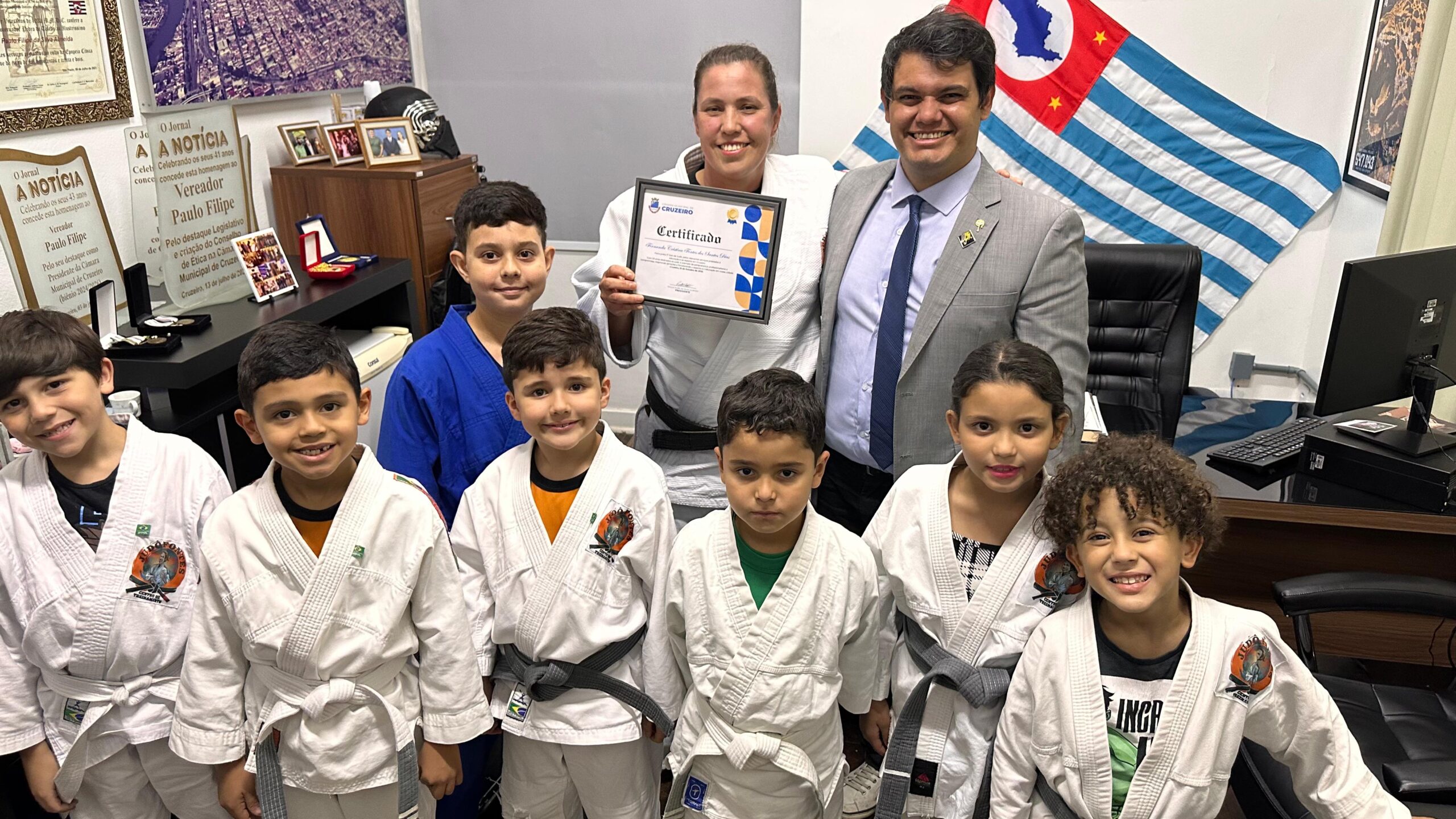A Câmara Municipal de Cruzeiro aprovou, na sessão desta segunda-feira, 20 de outubro, um Voto de Aplauso de autoria do presidente da Casa, vereador Paulo Filipe, em homenagem à professora Fernanda Cristina Fontes dos Santos Dias, faixa preta 3º Dan de Judô, pelos relevantes serviços prestados à educação e ao esporte no município.