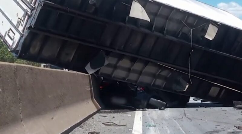 Casal de idosos de Lorena escapa ileso após caminhão tombar sobre carro na Dutra: “Um milagre”