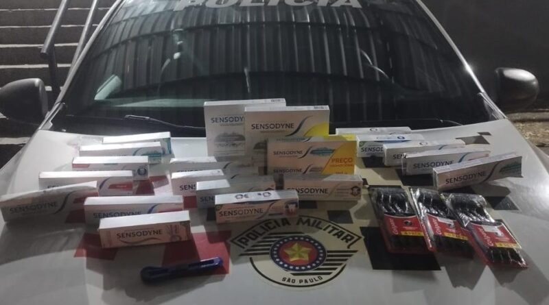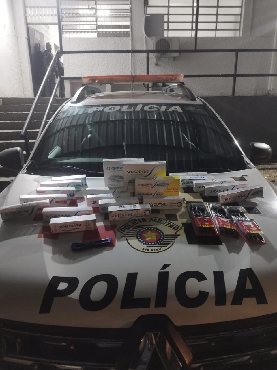 No retorno rápido ao endereço indicado, os policiais abordaram um homem, uma mulher e três crianças. Com eles, foi encontrada uma sacola contendo diversos produtos. Questionados sobre a origem dos itens, os suspeitos afirmaram que teriam comprado a mercadoria, mas não apresentaram nota fiscal que comprovasse a compra.