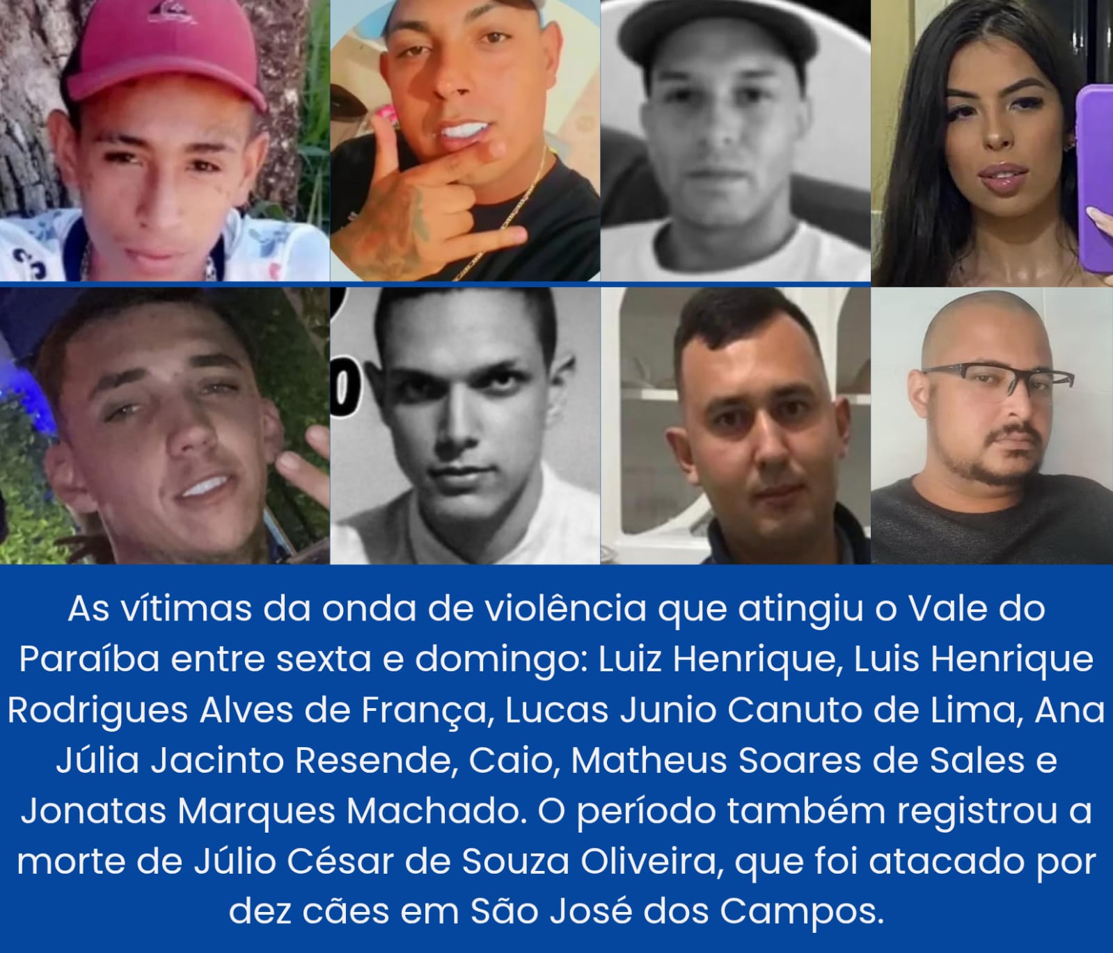Ao fim dos quatro dias, o Vale do Paraíba contabiliza oito mortes em circunstâncias que incluem execuções, tiroteios, atropelamento intencional, morte durante abordagem policial e um ataque de cães. O período expõe a face mais dura da violência que se espalha pela região e reacende discussões sobre medidas de proteção, prevenção e investigação.