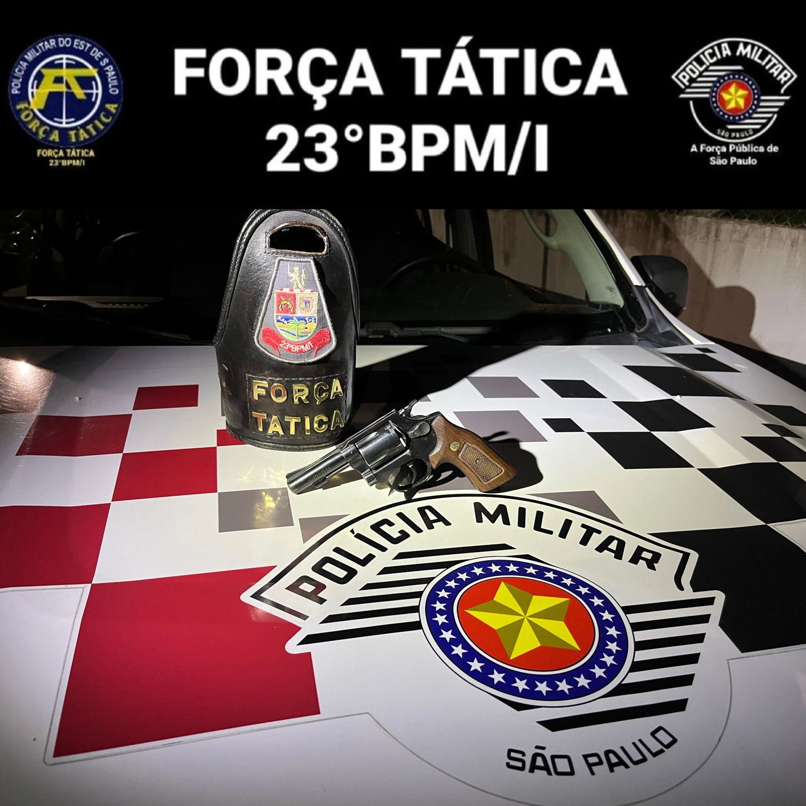 Em mais uma ação de destaque, policiais da Companhia de Força Tática do 23º Batalhão prenderam em flagrante um criminoso por porte ilegal de arma de fogo no bairro Vila Paulista. Durante a abordagem e revista pessoal, foi localizado um revólver calibre 38 em posse do indivíduo. Diante da constatação do crime, o homem recebeu voz de prisão e foi encaminhado à Delegacia de Polícia, onde permaneceu à disposição da Justiça. A apreensão do armamento representa mais um passo importante na prevenção de crimes e na retirada de armas de circulação.