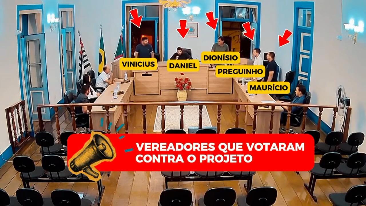 Votaram contra o projeto os vereadores Dionísio, Preguinho, Maurício Taioba, Vinícios e Daniel, presidente da Câmara Municipal. A votação formou maioria suficiente para barrar a iniciativa encaminhada pelo Poder Executivo.
