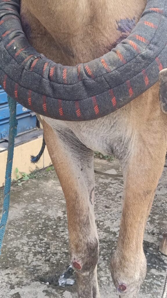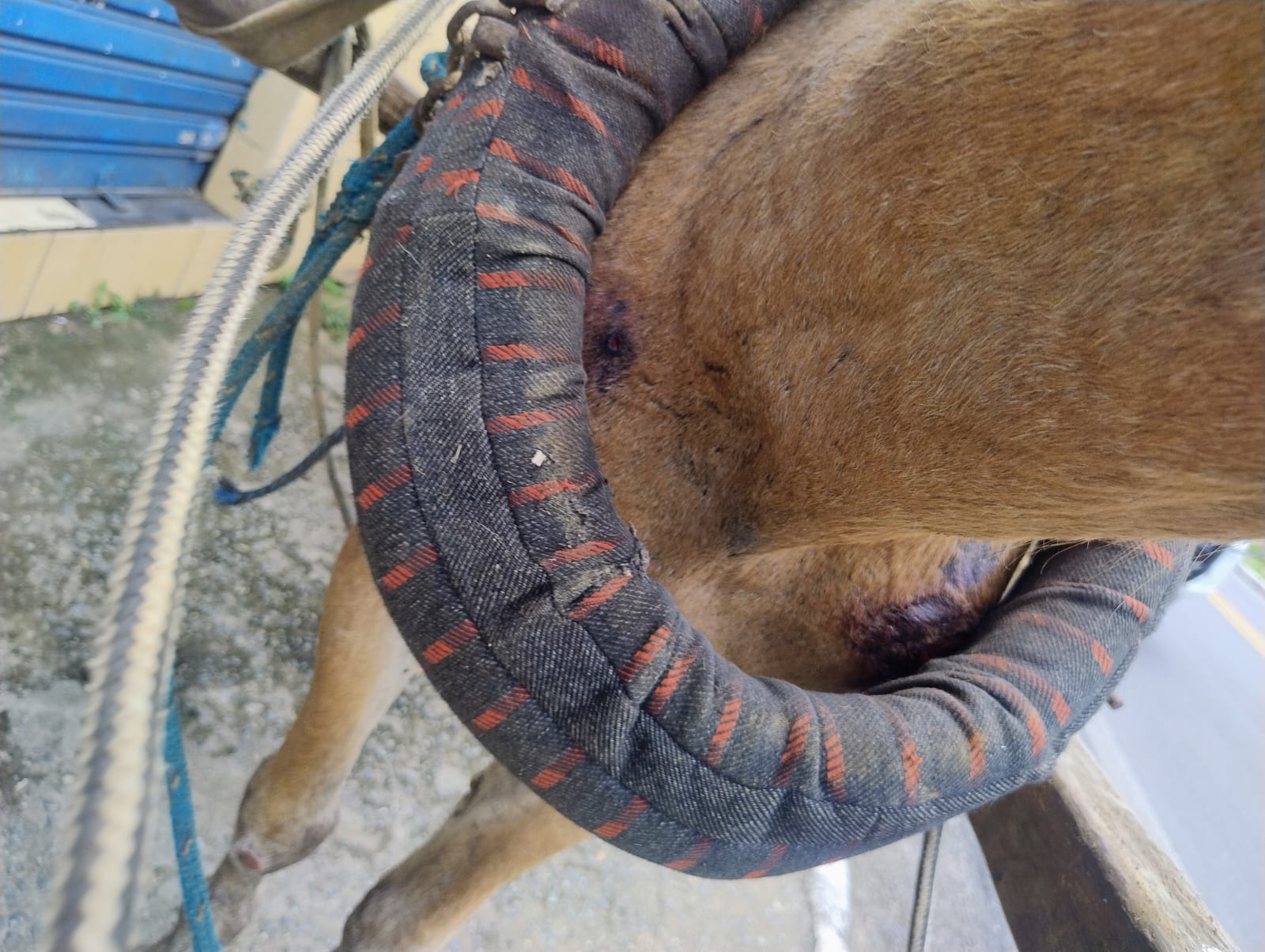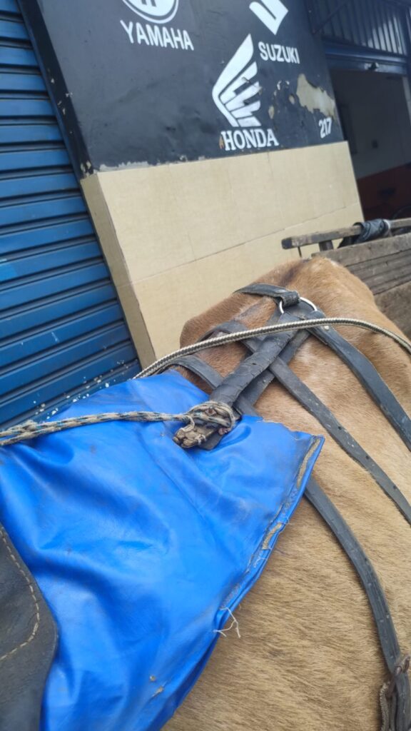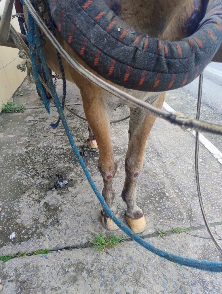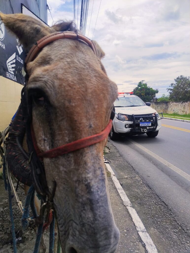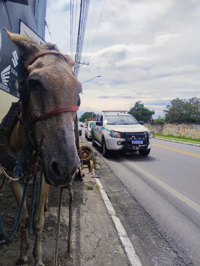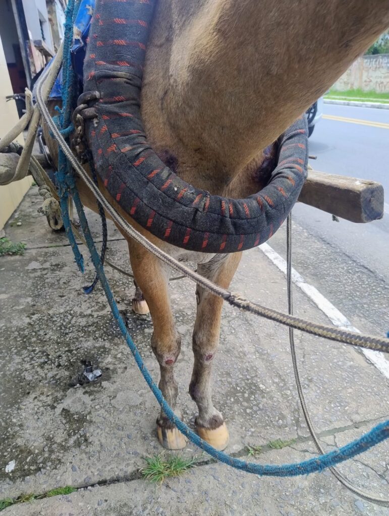 No local, os agentes se depararam com uma mula de cor baia atrelada a uma carroça, apresentando ferimentos aparentes, sinais claros de desgaste físico, magreza excessiva e condição incompatível com o trabalho que desempenhava. Os guardas constataram ainda que o animal aparentava idade avançada, o que agravava ainda mais a situação de sofrimento.