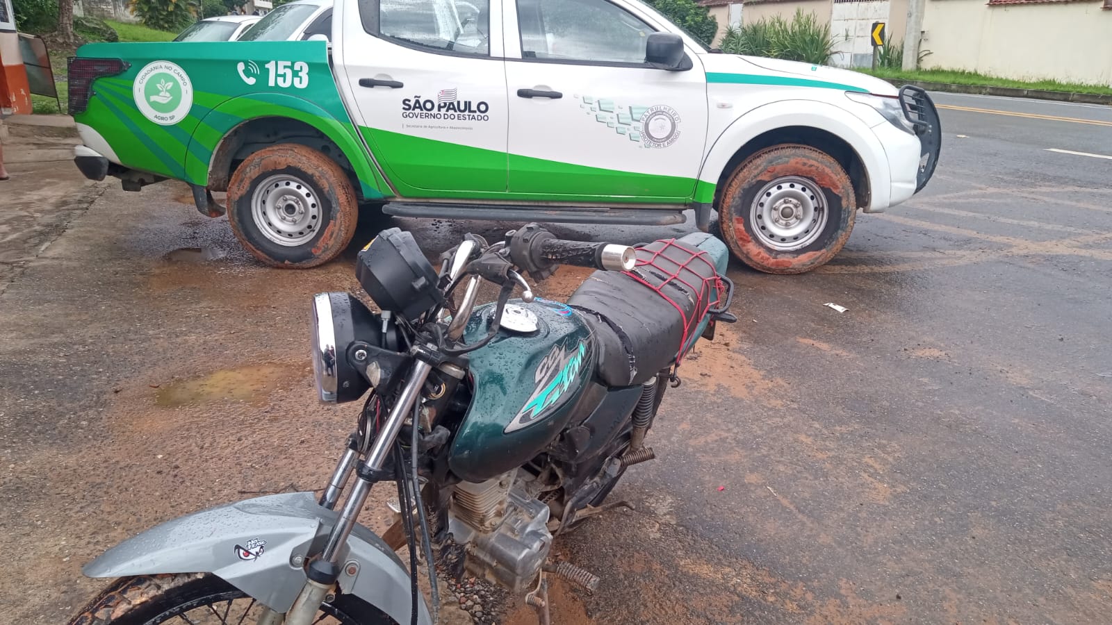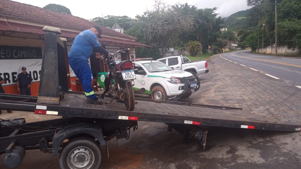 O motociclista iniciou então uma fuga em trecho de estrada escorregadia, em uma condução considerada arriscada. A viatura 06 acompanhou o suspeito até sua residência, onde ele foi finalmente abordado e convidado a conversar com os agentes. Durante a verificação, foram constatadas irregularidades administrativas relacionadas ao veículo, incluindo pendências que resultaram no recolhimento administrativo da motocicleta.