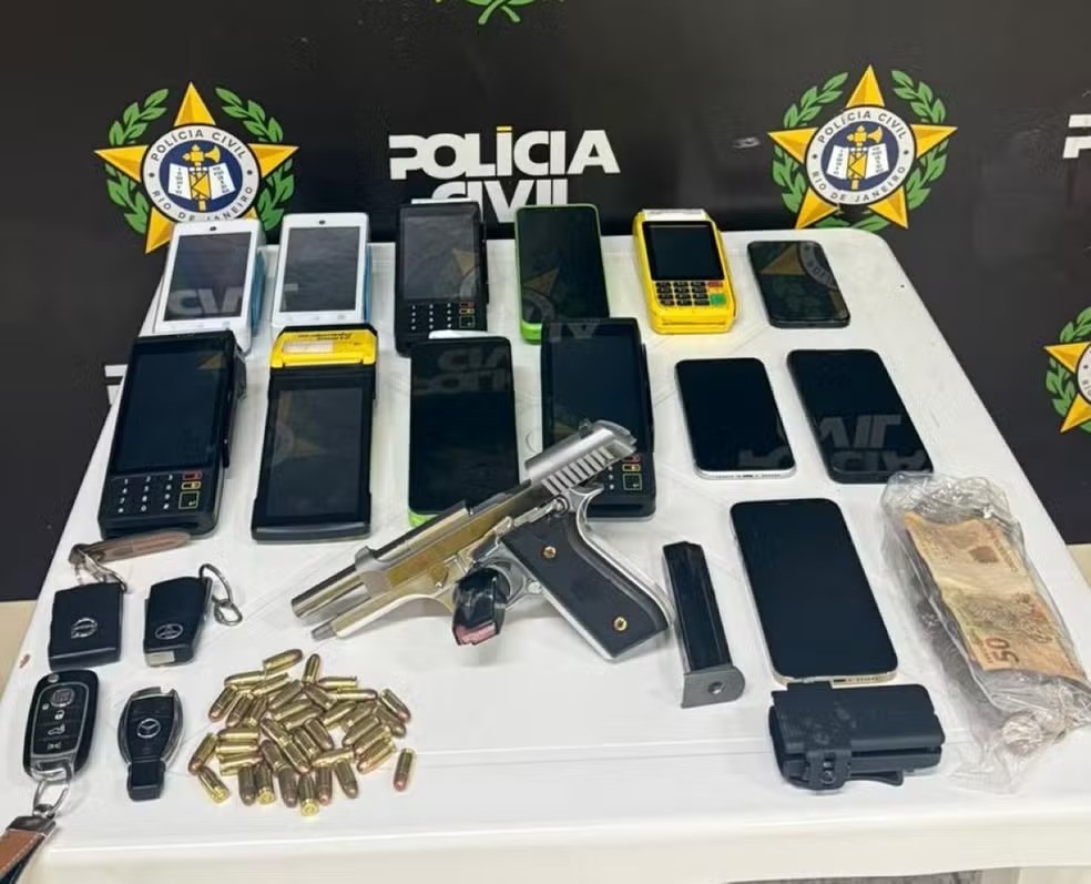 Durante a ação, os policiais apreenderam três carros de luxo, quatro celulares, nove máquinas de cartão, 38 munições, uma pistola, dois carregadores e uma quantia em dinheiro. Todo o material foi encaminhado à delegacia de Barra Mansa, juntamente com os suspeitos.