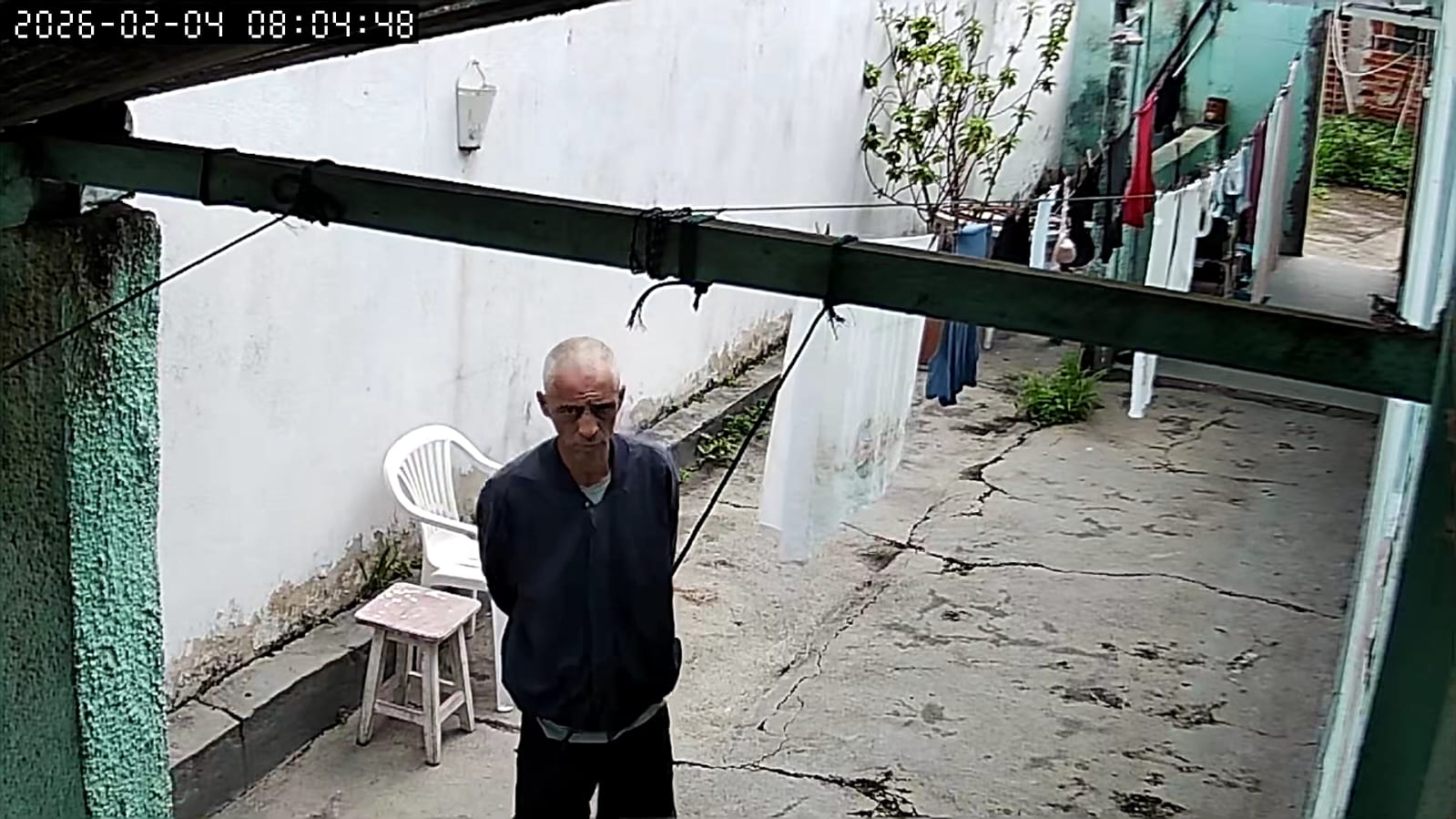 O caso aconteceu na manhã de quarta-feira, dia 4. As imagens do circuito interno mostram o suspeito já dentro do quintal da residência, caminhando pelo local e analisando o ambiente com calma. Em seguida, ele se aproxima das janelas, tenta espiar o interior da casa e força a porta da residência, tentando entrar. Sem conseguir acesso ao interior do imóvel, o homem deixa o local.