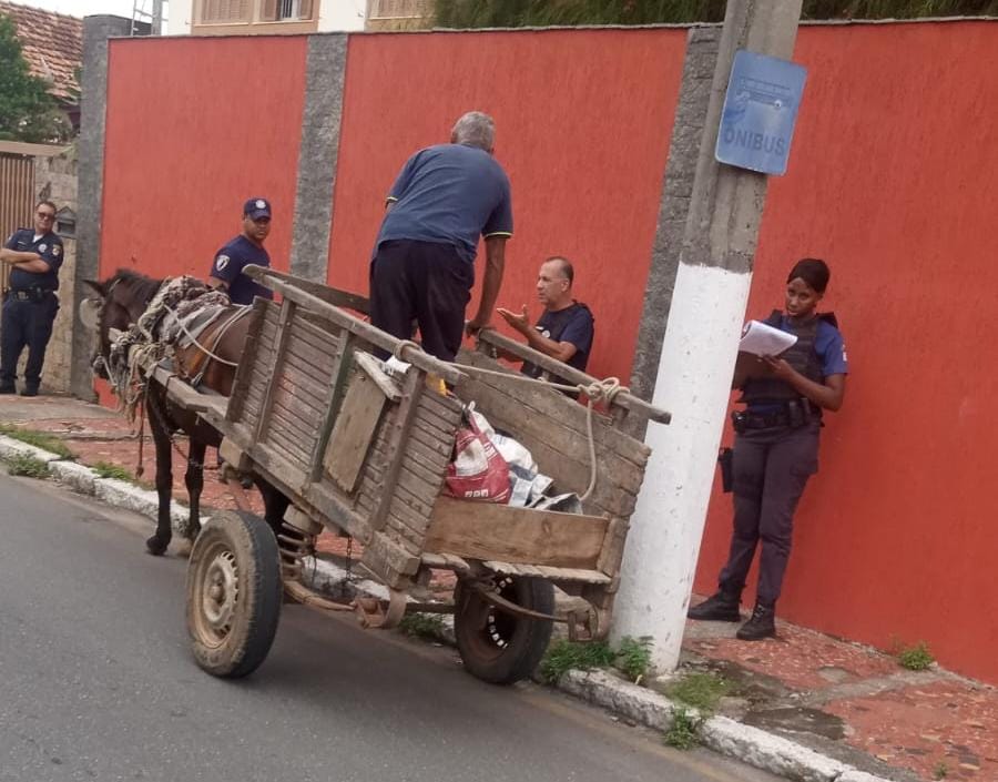 A Guarda Civil Municipal de Cruzeiro realizou uma intervenção após flagrar um homem conduzindo uma carroça com carga e utilizando chicote contra o cavalo em via pública. A ação ocorreu durante patrulhamento de rotina e foi conduzida pelo inspetor Adalmir.