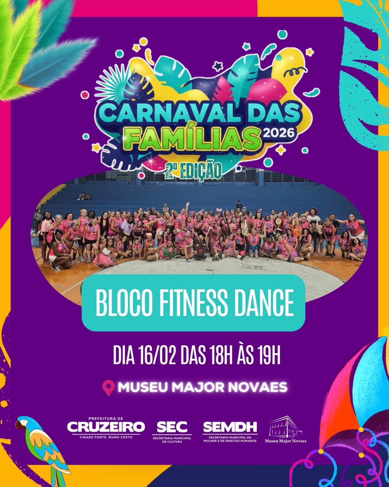O Carnaval das Famílias 2026, em Cruzeiro, segue consolidado como um dos eventos mais prestigiados e queridos pela população, reunindo multidões em um ambiente seguro, organizado e voltado para todas as idades. Nesta segunda-feira, 16 de fevereiro, a programação ganha ainda mais força com uma atração inédita que promete movimentar o público e reforçar o clima de alegria e integração que já marca a festa: o primeiro aulão do Bloco Fitness Dance dentro da programação oficial do evento.