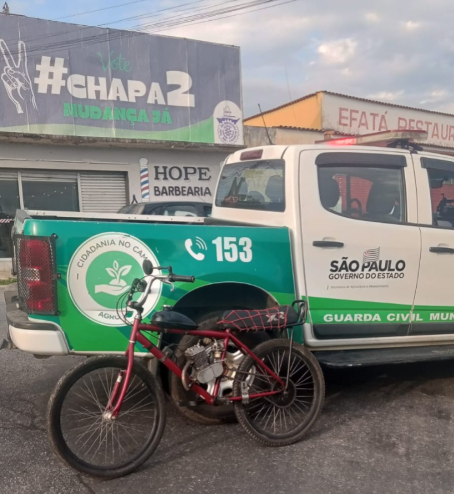 Uma ação da Guarda Civil Municipal de Cruzeiro terminou com a apreensão de uma bicicleta motorizada conduzida de forma irregular por adolescentes na cidade. A ocorrência mobilizou agentes da corporação após a constatação de diversas irregularidades previstas no Código de Trânsito Brasileiro.