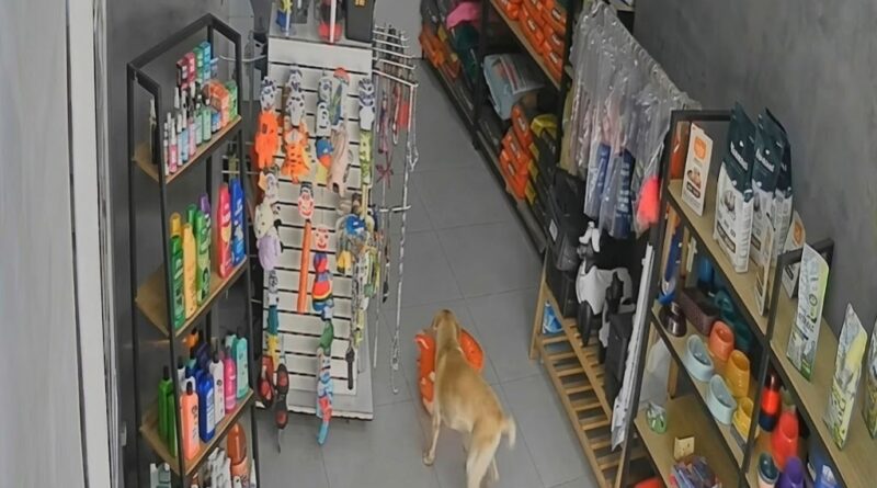 “ASSALTO CANINO!”: Cadela ‘Caramela’ invade loja e foge com saco de ração em Barra Mansa