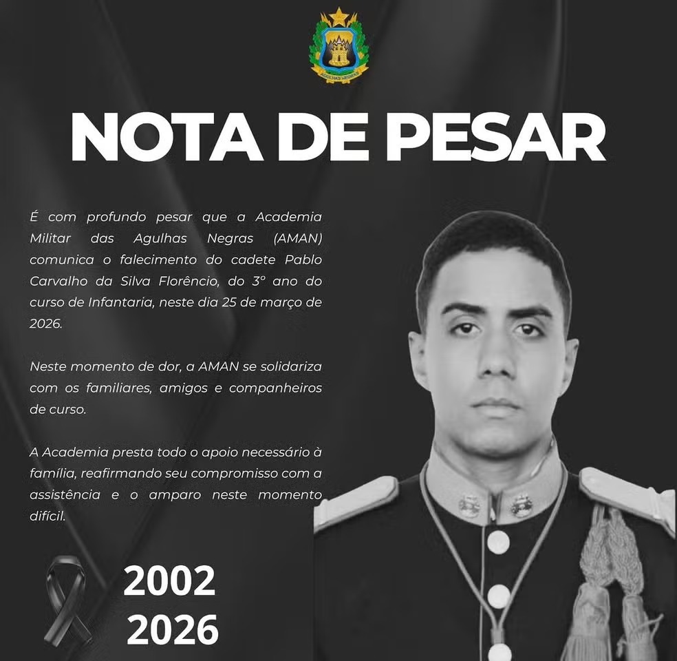 Uma fatalidade de grande impacto abalou a rotina da Academia Militar das Agulhas Negras, em Resende (RJ), e gerou forte comoção entre militares e a comunidade local. O cadete Pablo Carvalho da Silva, de 24 anos, conhecido como “Florêncio”, morreu após não resistir às complicações de um grave mal súbito ocorrido durante uma atividade de treinamento físico.