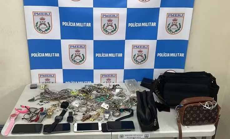 Entre os materiais recuperados estavam relógios, óculos de sol, pulseiras, cordões dourados, uma bolsa, uma mala de viagem, cinco aparelhos celulares e aproximadamente R$ 850 em dinheiro. Os itens foram reconhecidos como pertencentes à vítima, reforçando os indícios contra os suspeitos.