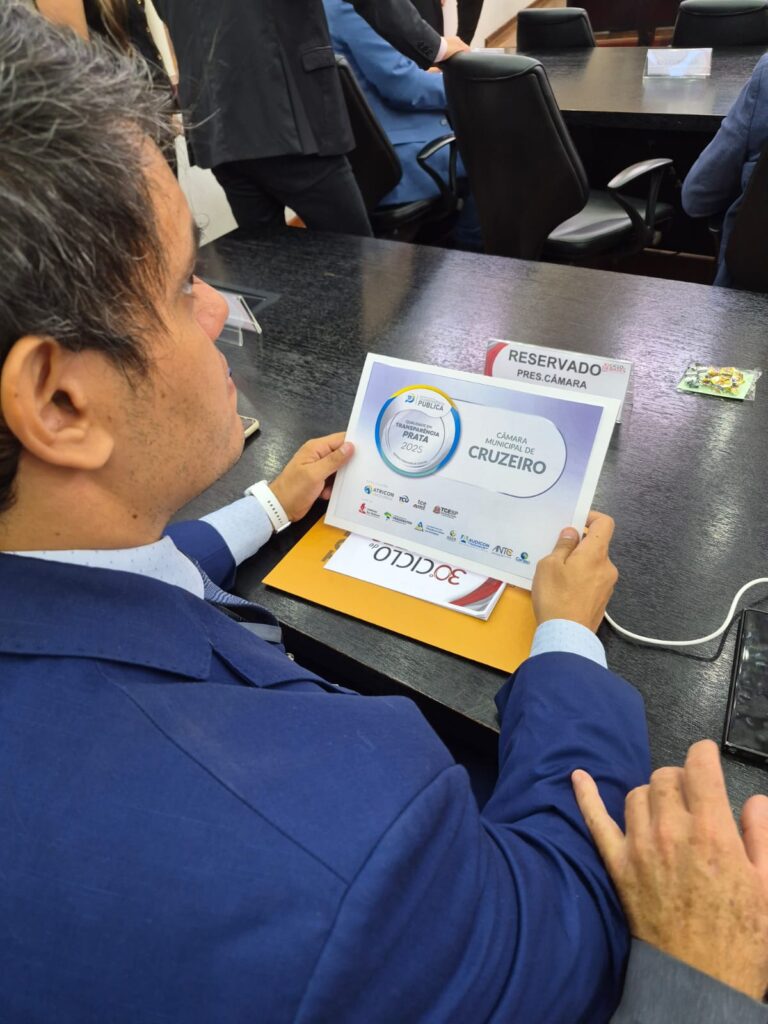Sob a presidência do vereador Paulo Filipe, o Legislativo cruzeirense recebeu o certificado com o Selo de Transparência, entregue pela presidente do Tribunal de Contas, Cristiane de Castro Moraes. O reconhecimento simboliza uma transformação significativa na forma como a Câmara vem conduzindo sua gestão e disponibilizando informações à população.