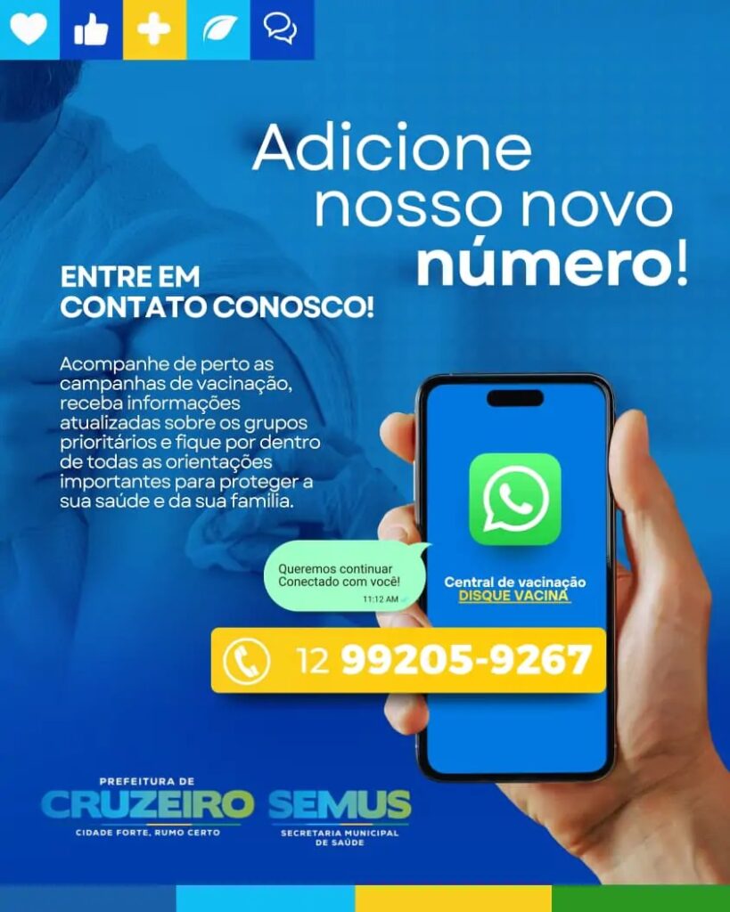 A iniciativa, coordenada pela Secretaria Municipal de Saúde, surge como um canal direto, rápido e acessível, permitindo que qualquer cidadão entre em contato pelo número 12 99205-9267 para tirar dúvidas sobre vacinas disponíveis, locais de aplicação, horários de atendimento, campanhas em andamento, grupos prioritários, contraindicações e uma série de orientações fundamentais para manter a saúde em dia.