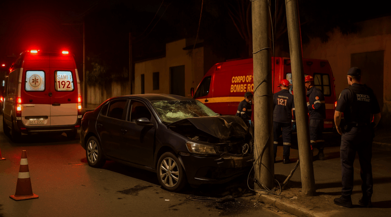 Colisão contra poste deixa quatro feridos em Guaratinguetá, incluindo uma criança de três anos