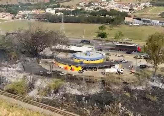 Vídeo – Incêndio destrói viaturas e atinge posto da PRF na Via Dutra em Roseira