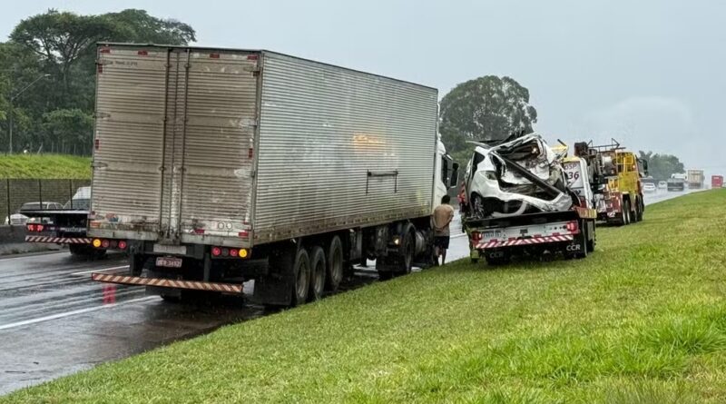 Um trágico engavetamento envolvendo três veículos deixou duas pessoas mortas e outras duas feridas na manhã deste sábado (7) em