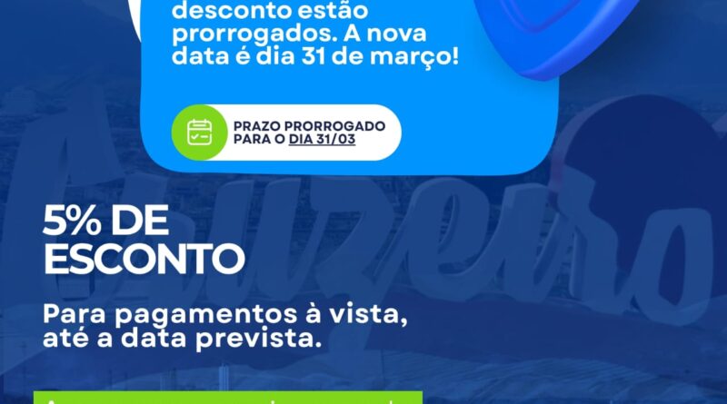 A Prefeitura de Cruzeiro decidiu ampliar o prazo para pagamento da primeira parcela e da cota única do IPTU 2026,
