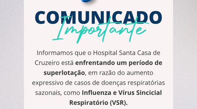 Read MoreA Santa Casa de Misericórdia de Cruzeiro está enfrentando um momento crítico de superlotação, provocado pelo aumento expressivo de casos