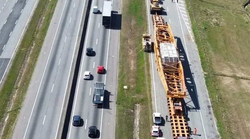 Maior carga já transportada na rodovia segue rumo ao Rio de Janeiro antes de embarcar para a Arábia Saudita A