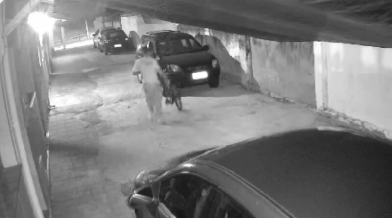 Vídeo mostra ladrão pulando muro e furtando bicicleta dentro de condomínio no Centro de Cruzeiro
